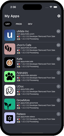 Create unlimited groups and easily add multiple developer accounts to each group. For example, create a PROD group for all your client's accounts and view the status of all your PROD apps in one place. Streamline your workflow and boost productivity.